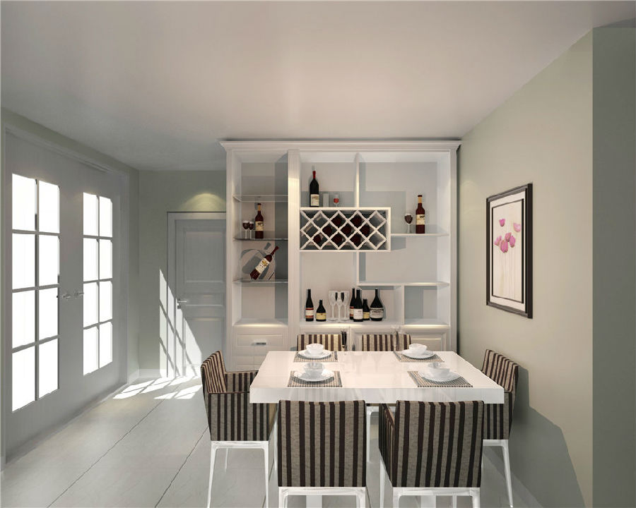 整體色彩采用純白色系,大面積的使用,使整體格局顯得十分整潔與開(kāi)闊,空間十足,純白色的酒柜與整體風(fēng)格相呼應(yīng),在收納面積增大的同時(shí),也展現(xiàn)了收納的美學(xué)。