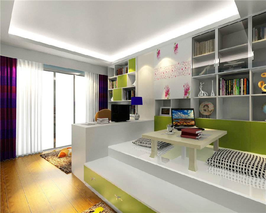 簡潔流暢的線條中,運(yùn)用大量的護(hù)眼色彩,讓人視覺上更加放松。榻榻米的設(shè)計(jì)造型,獨(dú)立的空間,真正實(shí)現(xiàn)一房兩用,絕對是小戶型家庭的首選。