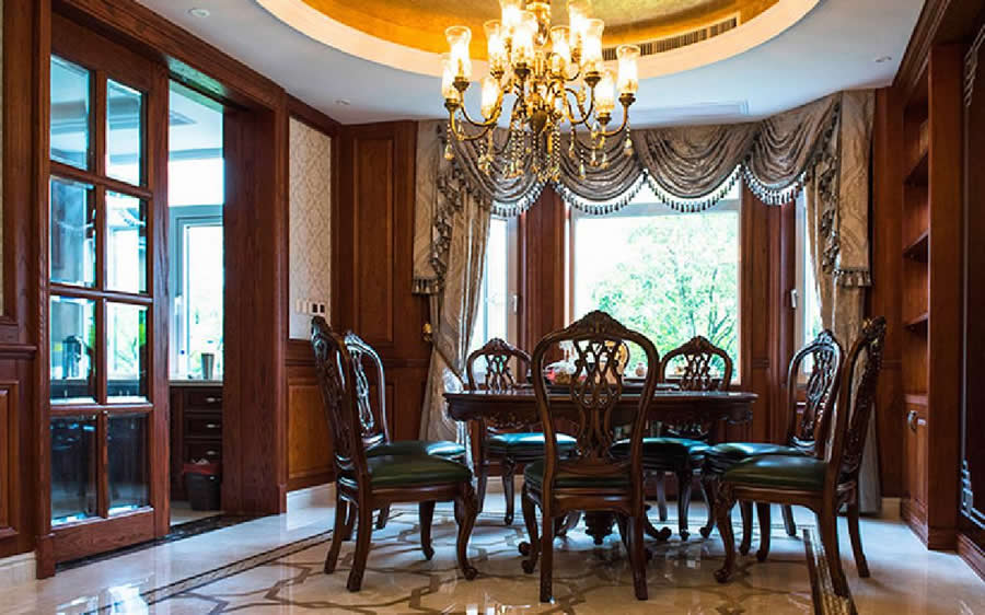 朱紅色整體色系,給人以厚重的質(zhì)感與高雅氣質(zhì),看起來(lái)十分婉約與高雅,也讓客廳整體看起來(lái)更加具有神秘感,可能這就是復(fù)古風(fēng)的獨(dú)特魅力吧。桌椅與沙發(fā)的配合,質(zhì)感與成熟的切換,切換中有帶并有著自己獨(dú)特的風(fēng)格,朱紅色條的結(jié)合,更加凸顯主人的高雅大氣,讓客廳整體布局看起來(lái)更具有品味,燈光下家具陳設(shè)散發(fā)著一種靜謐感。