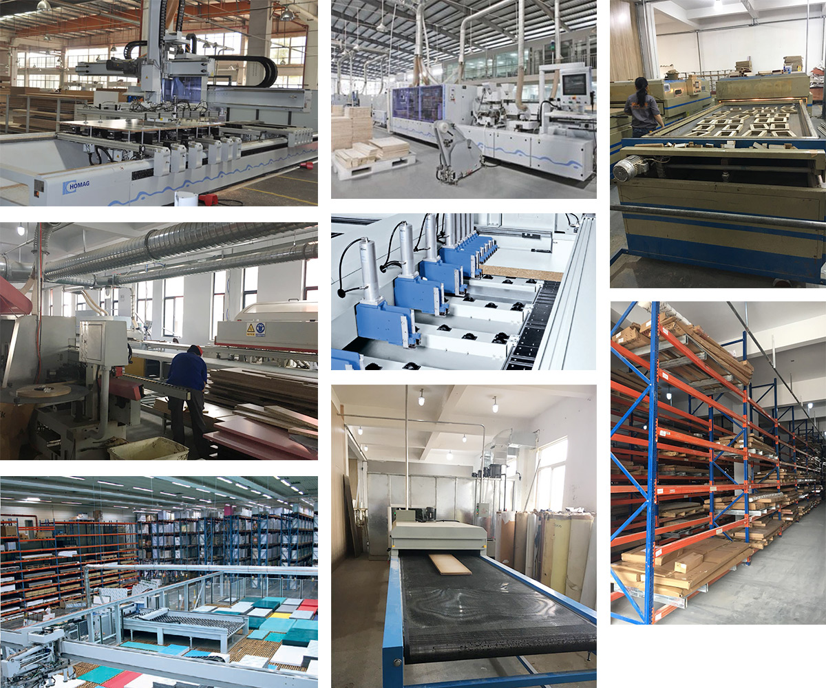 瑞儷藝家全套引進(jìn)行業(yè)內(nèi)先進(jìn)生產(chǎn)設(shè)備,通過(guò)數(shù)控自動(dòng)化生產(chǎn)線,面板的開(kāi)料、封邊、打孔等流程一氣呵成,大大減少了各環(huán)節(jié)之間的銜接流程,提高生產(chǎn)率。